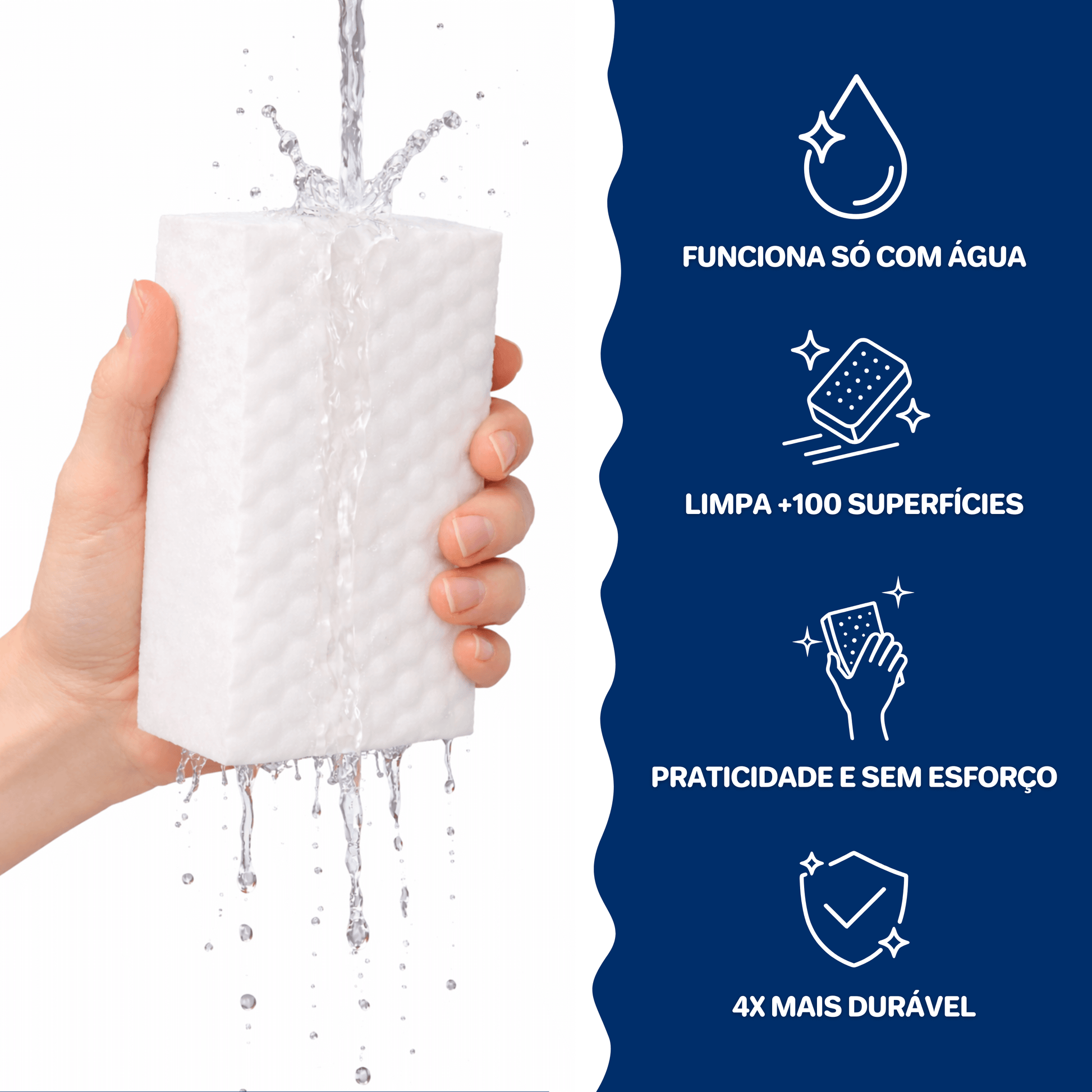 Como a Esponja Mágica Ultra Mecx® funciona somente com água, você economiza muito dinheiro por evitar a compra de vários produtos de limpeza, simplificando sua rotina e tornando a limpeza da sua casa mais prática, rápida e barata.
